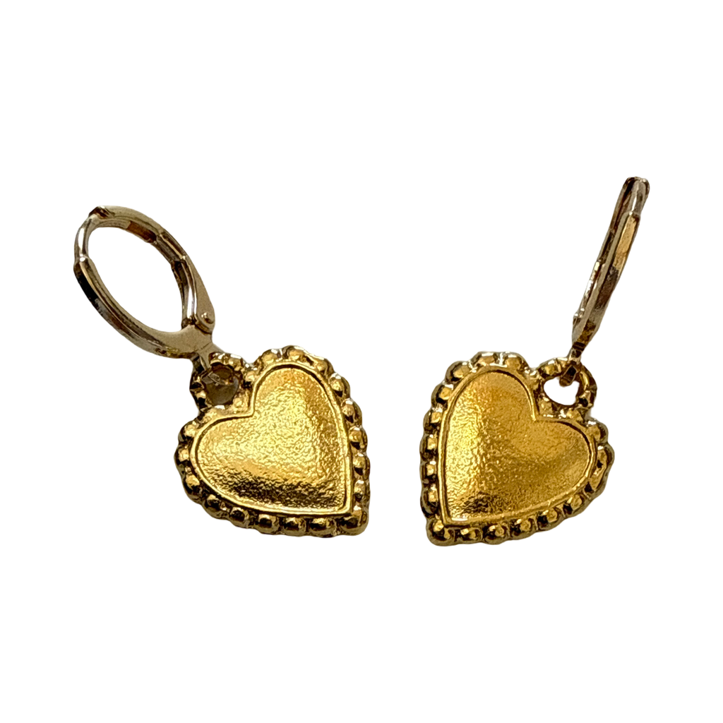 Vintage hearts as sweet as candy, created into delicate huggie hoops. Limited quantities available so grab yours now. 1” in length.